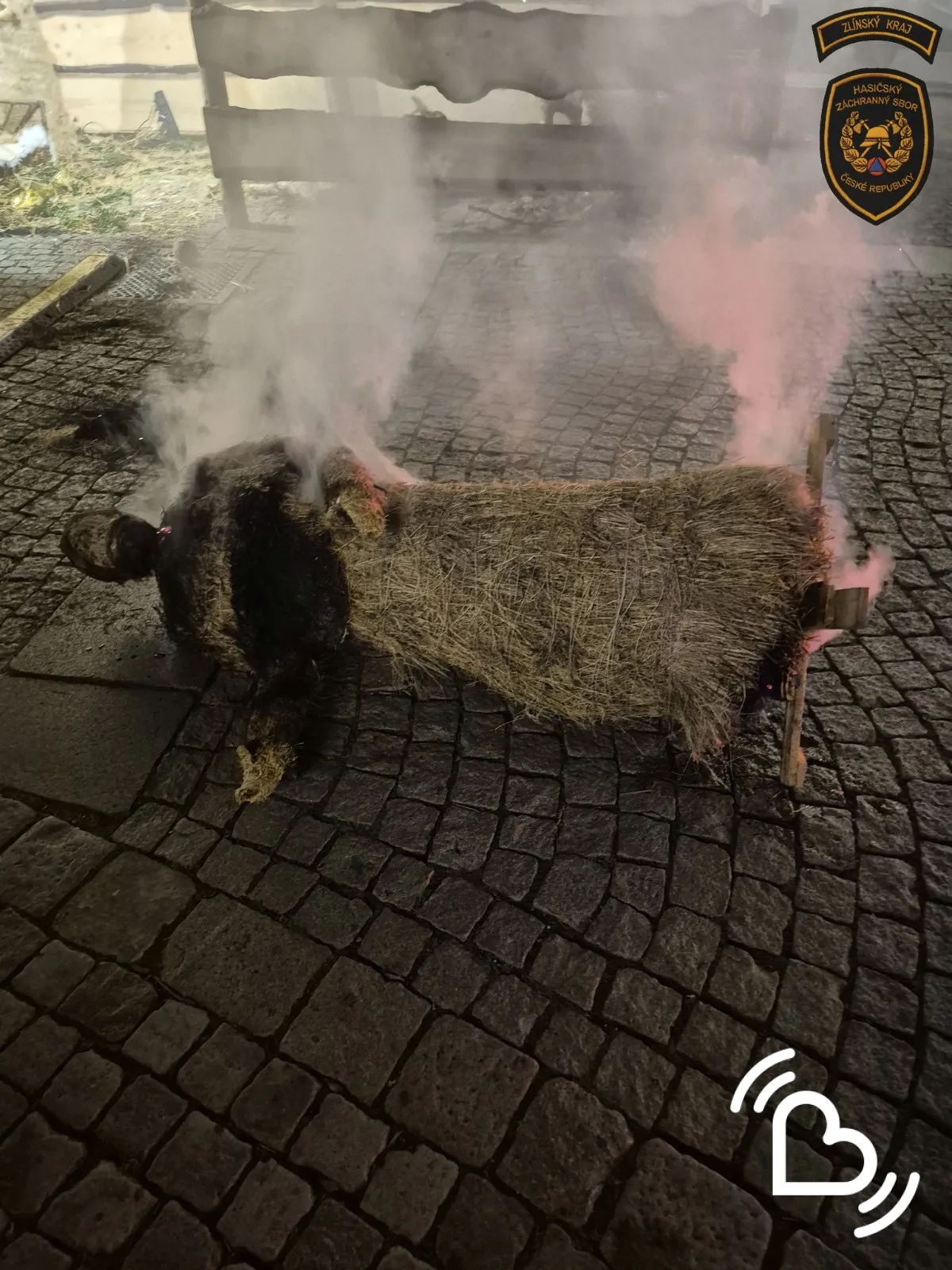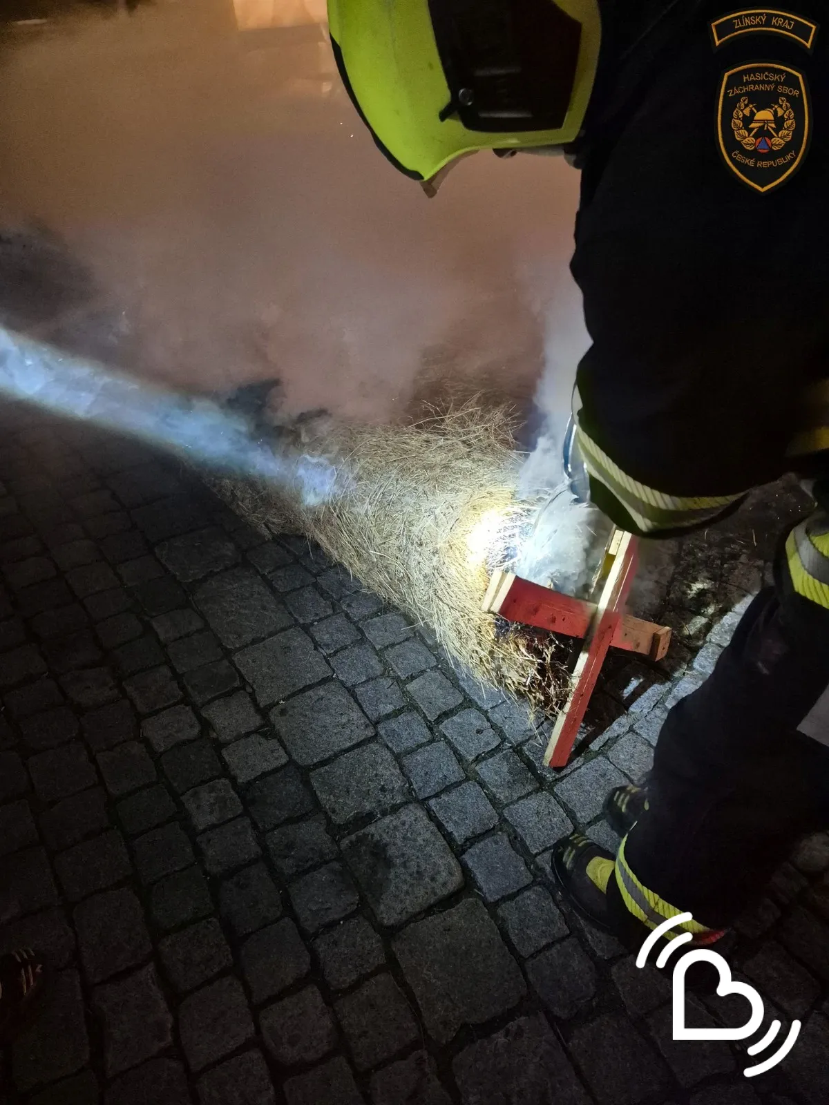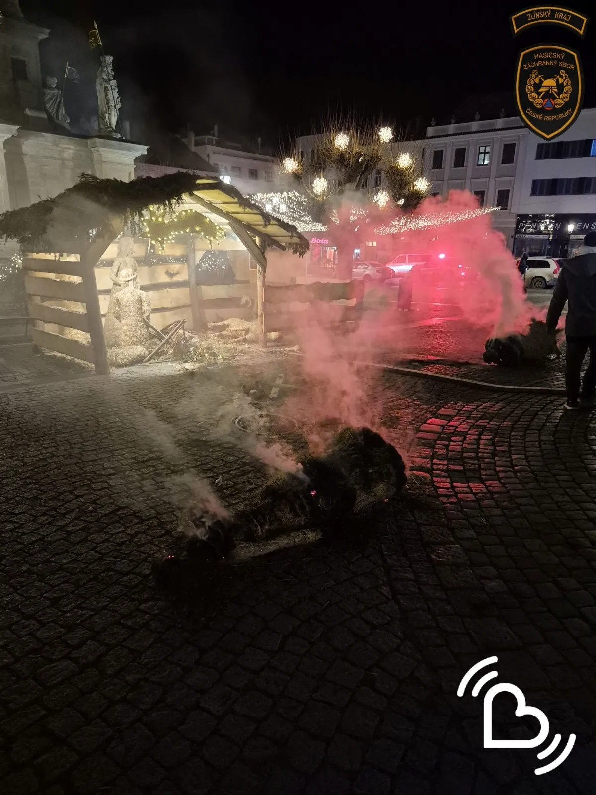 KROMĚŘÍŽ – Hodně netradiční vánoční požár řešili v noci na dnešek (pondělí 29. prosince) profesionální hasiči v Kroměříži. Začaly hořet dvě slámové postavy betléma na Velkém náměstí.